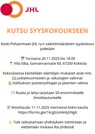Keski-Pohjanmaan JHL kutsuu just sua!